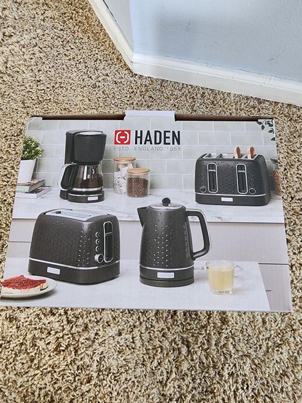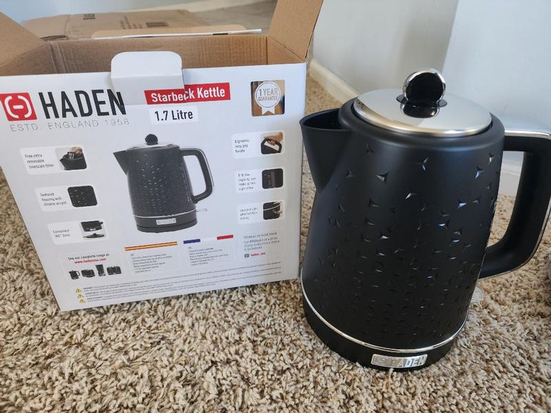 The Haden water kettle is a Great water kettle. It Warms up water quickly. It has a sleek, elegant design. Looks great on my countertop and matches my other appliances.