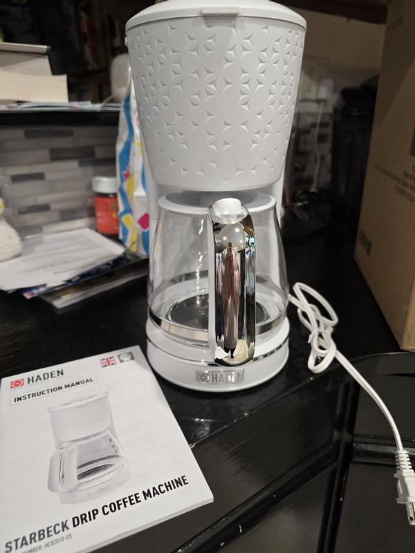 My husband is a daily coffee drinker, and we've had a lot of similar coffee machines like this and some different styles (like caraffes) over the years. Honestly, they're all pretty similar - easy to use and to the point, no muss no fuss. I like the embossed design on the top portion of the housing unit. It brings a little dimension to the overall very clean and minimal look.The chrome on the handle is an excellent touch as well and provides an elevated luxury feel by breaking up what could've been somewhat of a generic design. It's also quiet, and the base doesn't have a huge footprint, so it sits nicely on the countertop without being obtrusive.