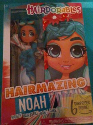 We love Noah she comes from the Hairdorables Hairmazing Prom Perfect series. Noah has beautiful blue and blond hair, her gorgeous prom dress is so cute adorned with flowers. We love how the box folds out to a prom themed backdrop with cardboard speakers and with the doll stand that is included she can pose for pictures. She also comes with little surprise packs you open them and Noah gets to wear a beautiful hair flower some awesome earrings shoes and she even has a purse that looks like a corsage and it opens up. Noah has provided hours of fun for my granddaughter. This doll is so beautiful looks like I'll be on the lookout for more Hairdorables Hairmazing Dolls.