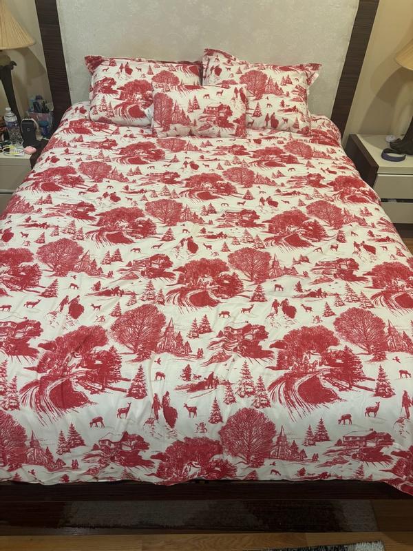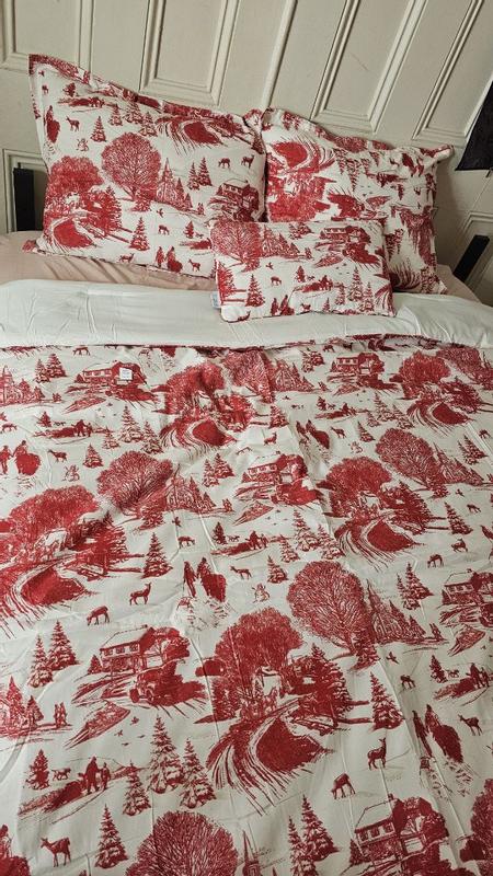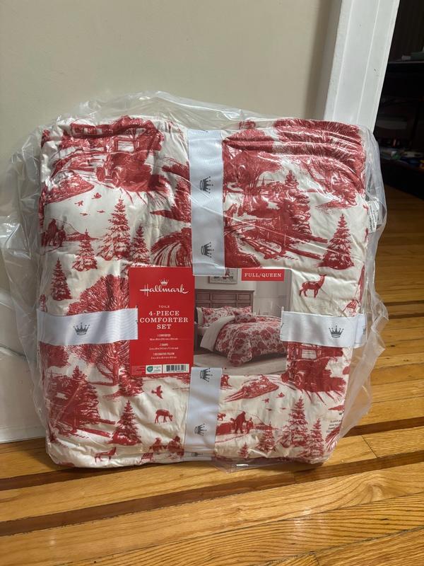 I received the Hallmark Toile 4 Pc. Comforter Set from influencer, and I couldn’t be happier with it. The winter themed toile print think snowy houses, horse-drawn sleighs and cheerful snowmen instantly brings a cozy and festive vibe to my bedroom. The microfiber material feels soft and comfortable without being overly heavy, so it’s great for snuggling up on chilly nights. Plus, the set includes the comforter, matching shams, and a decorative pillow, so the bed looks complete and put together right out of the box.  Overall stylish, comfy, and totally seasonal. For durability, it seems well-made for regular use. The microfiber fabrication resists fading and the stitching feels solid, so I feel confident it’ll last through multiple seasons of use and washing