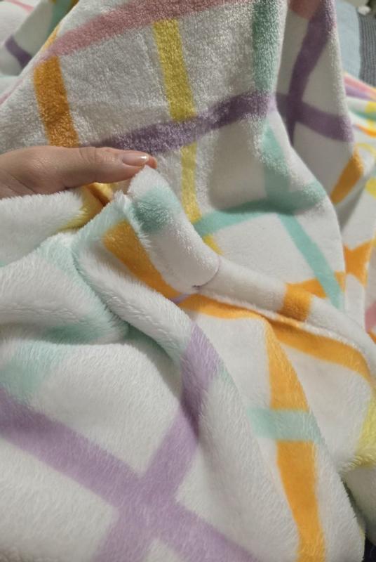I absolutely love this Hallmark Chromatic Grid Plush Throw Blanket! It's incredibly cozy and soft, perfect for relaxing on the couch. There was no odor when I opened it, and the weight and thickness feel just right, warm but not too heavy. So far, I haven't noticed any pilling, and it still looks beautiful. The pastel colors are gorgeous and add such a soft, calming touch to any space. Definitely a comfy and stylish throw!