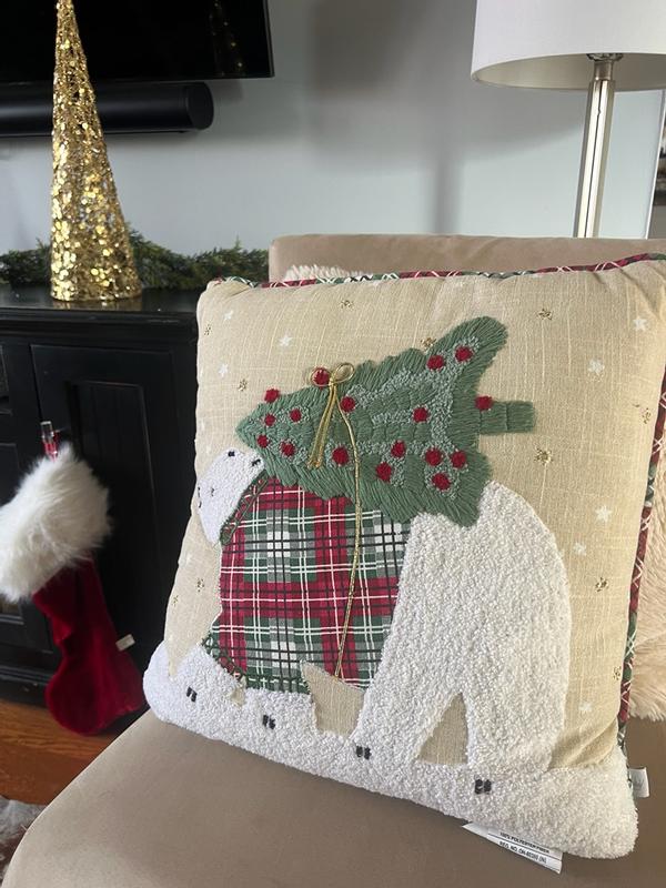 Polar Bear Holiday Decorative Pillow, 18" x 18"