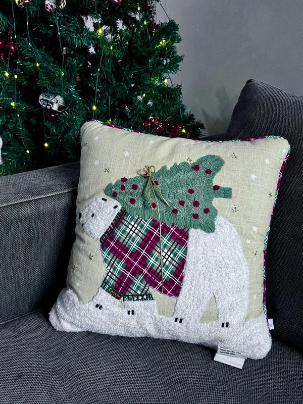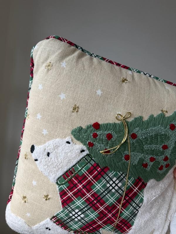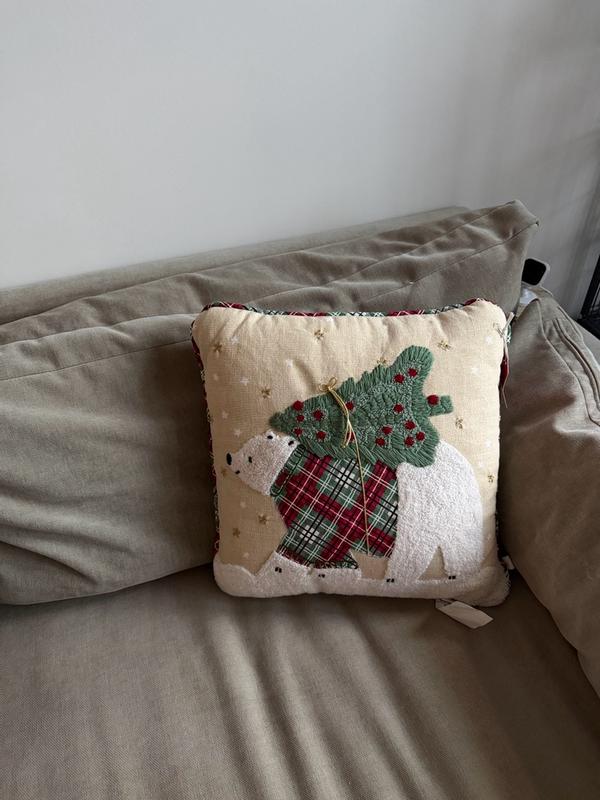 Beautiful quality pillow. I love Christmas designs with a bear and a Christmas tree on his back - good quality embroidery, very festive. The colors are neutral and very much fitting for any interior design.