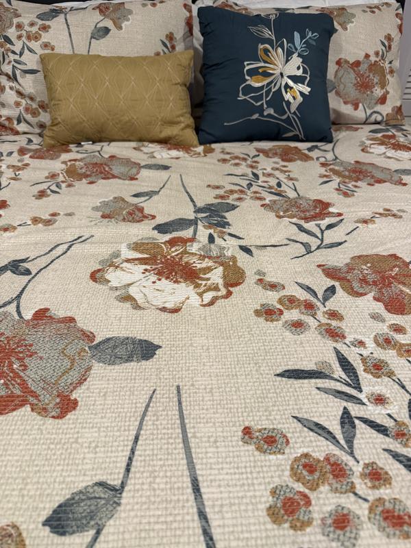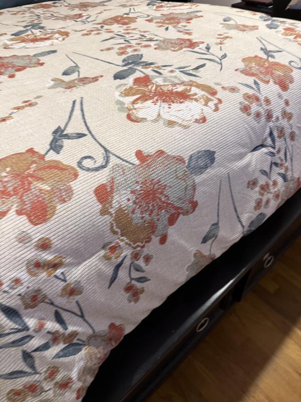 Great comforter set with everything you need in it from comforter to 2 sheet, 2 pillows and 2 pillow cover. Beautiful pattern with flowers on it. Great for fall or anytime comforter. Can be machine washed