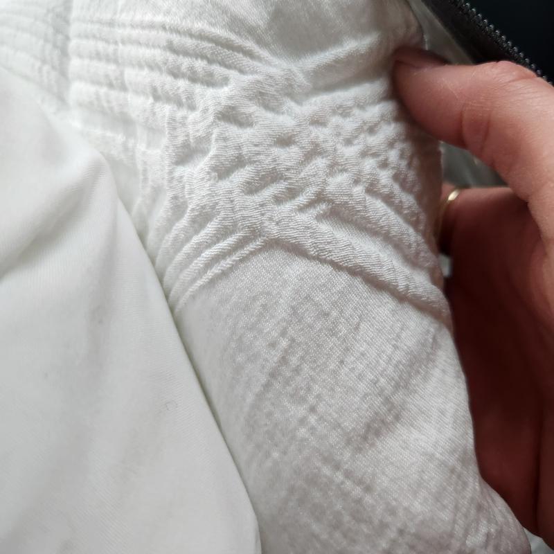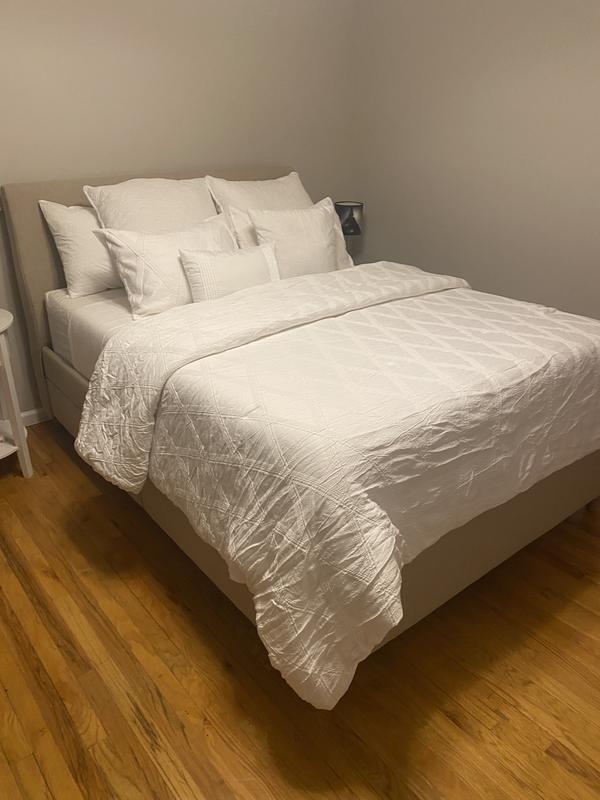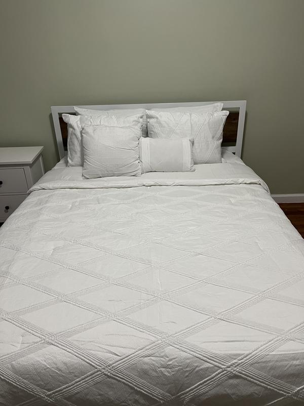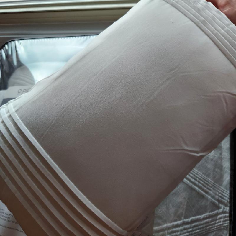 I bought this set for my guest room. Queen set comes with 9 pieces. The comforter and shams are a pretty good quality. The sheets are okay and the accent pillows aren't the greatest quality. I upgraded it by buying my own accent pillows. Also you have to like that wrinkly texture which I'm okay with. All in all I'm happy with my purchase.