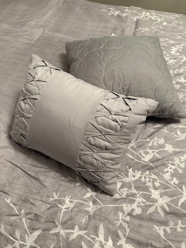 When I opened this comforter set, I was surprised how soft and light they are. The matching decorative pillows are very soft too, and the material doesn't wrinkle easily so it always looks new. The gray color is perfect for my guest room. I am very happy with this.