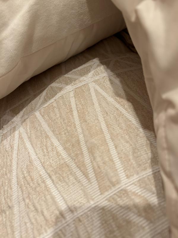 Well pleased with this comforter! It was hard to see in the picture, the set is 2 shades if beige. Very comfortable! I have not washed it but it seems like the material that would clean up well. I would definitely recommend. I was planning on using it in a spare bedroom but think I put it in the master bedroom when we move in.