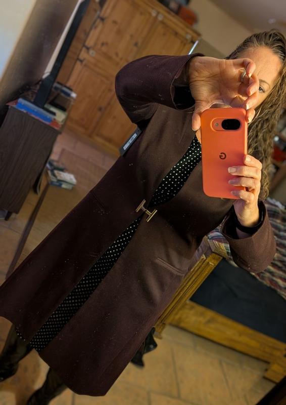 I love how lightweight it is while still providing warmth, perfect for transitioning between seasons or wearing in an air-conditioned office. The fit is flattering and true to size, with clean lines that give it a polished look. The quality of the stitching and material feels premium, and it holds its shape well even after multiple wears. Overall, this jacket is a great combination of comfort, style, and sophistication. A beautiful wardrobe staple that can be dressed up or down. Highly recommended!