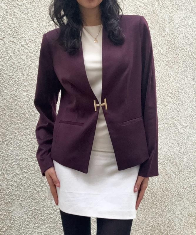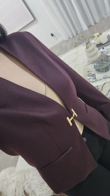 This is a nice blazer overall. The cut is flattering and drapes nicely without looking to stiff. The H hardware also looks and feels high quality. My only real complaint is the fabric. At this price point, I would have expected at least a blend with some natural materials like wool or cotton, but the blazer is 100% polyester. It still looks good and feels soft and comfortable, but a more premium fabric would have made it feel worth the full price. Overall, it is stylish and well-made. I just wish there were some natural materials.