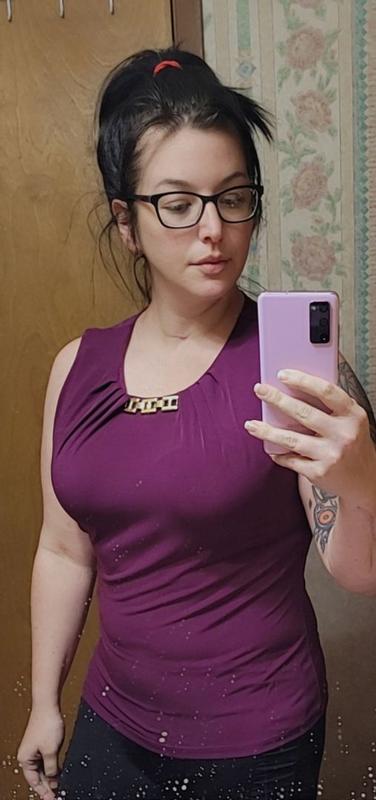 Elevate your collection with this tank top from Halston. Featuring a crew neckline, H chain detailing, and pleated accents, it combines elegance with effortless style.