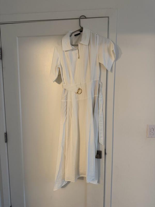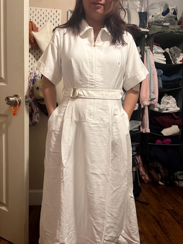 I am in absolute love with how amazing this dress fits! I honestly never thought something could fit me so perfect without ever trying it! I ordered in a size 6 because I'm currently pregnant and it fit me like a glove! I am so in awe of how amazing the quality is' the belt, the zipper, how luxurious the cloth feels and honestly just overall looks so elevated and absolutely worth the price! The sleeves are a magical touch that makes this Halston Women's Mazi Belted Shirt Dress stand out from other dressed I've tried in the past! Absolutely recommend