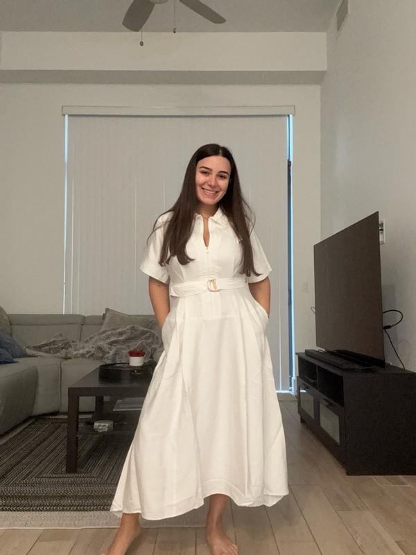 I received a Halston Women's Maxi Belted Shirt Dress, complimentary in exchange for my honest review. Halston's Women's Maxi Belted Shirt Dress is perfect for Spring and Summer. The dress is cool, comfortable, and flowy. The gold buckle and zipper accentuate the white fabric, complementing the entire look. When wearing, I feel elevated, confident, and sophisticated. It can be dressed up with heels and gold jewelry for an elegant occasion, or paired with sandals for a casual outing or working in the office. The dress material is thick enough that it isn't able to be seen through, the stitching is supurb, and the zipper slides with ease. The dress is true to size. For reference, I am 5'6 and 110 pounds. I received the dress in a size 4 and it fit perfectly. Overall, I am extremely impressed with the material, quality, and craftsmanship of this dress. I know I'll get a lot of wear out of it in the warmer months.