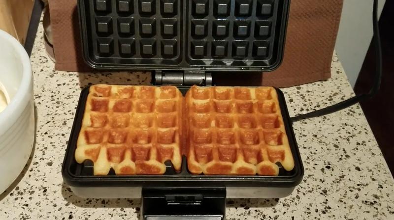 This is a great little waffle maker. It made crispy waffles that tasted great with just the basic pancake waffle/mix. I do wish the plates could come off so it was easier to clean because that is kind of pain. This also does not have a timer so you have to be careful and keep an eye on it so they don’t burn. Overall a good unit though and does the job well!