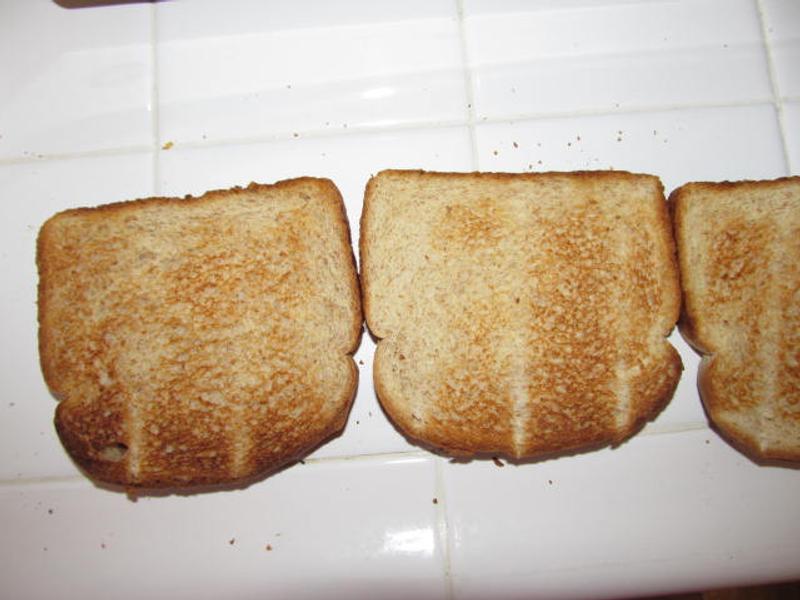 Takes a long time to toast. If the dial is on 3 or 5 1/2 it all toasts the same. I had a small bread and it stuck out when you pushed the button down to toast