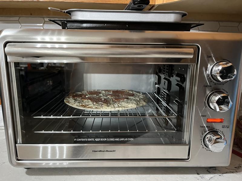 Hamilton Beach Countertop Oven with Convection, Rotisserie, Broiler is a great asset to my kitchen and a pleasure to review. I'm a foodie and always lookingforwaystostreamlinemycookingandspace,Hamilton Beach oven dies just that by providing a separate cooking area to practice my baking skills, throughout the warmer season without heating the oven or serving as an additional oven during the holidays. I was able to bake two layered cakes , pizza, dinnef rolls, and my favorite roast chicken with minimal cleanup. The oven looks great on your countertop, has two racks for baking and cooks evenly for uniformed cooking .