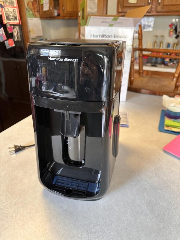 Coffee maker won't dispense coffee. The only way I can get it to dispense, is to remove and reset the carafe carrier multiple times and keep attempting to get a cup of coffee out of it. The pump is very loud and I can tell the pump is running but it won't dispense or is extremely slow at first. It should not be this hard to get a cup of coffee! Not satisfied with this product! I expected more out of Hamilton Beach.