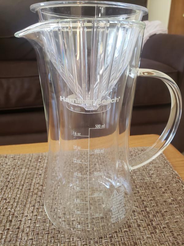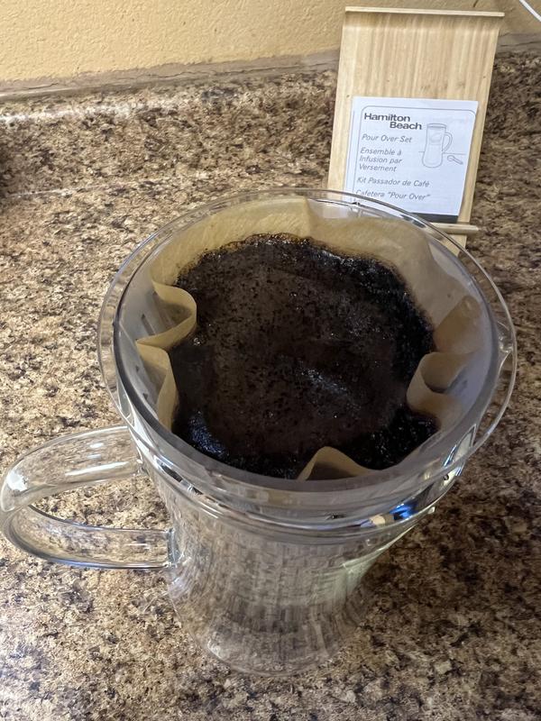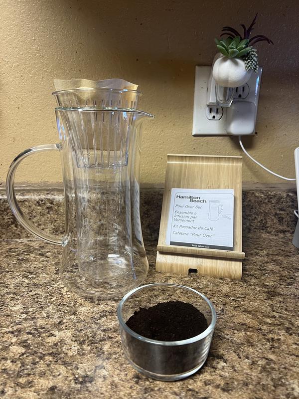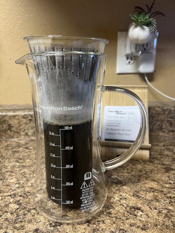 The Hamilton Beach Pour Over Drip Coffee Maker is a good product. We’ve been using it everyday and the pour over drip coffee tastes nice and is flavorful. The carafe is sturdy with a handle and the double-walled glass keeps the coffee hot. We can make up to 17 oz. of coffee. The carafe and drip basket are easy to clean. Overall, the Hamilton Beach Pour Over Coffee Maker is a nice product.