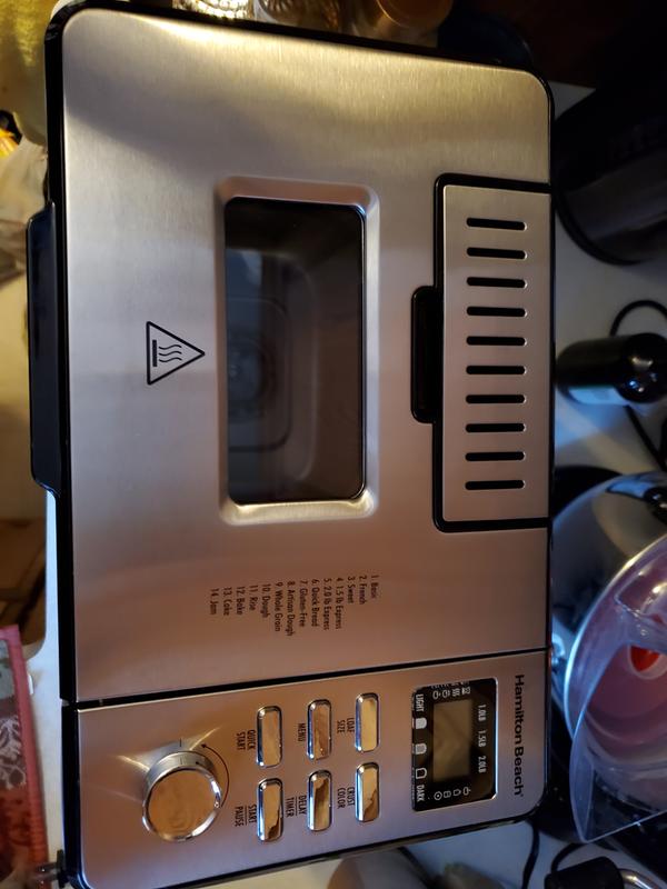 I purchased the Hamilton Beach bread maker because the description says it is dishwasher safe. Well, it is not. The inside of the pot is good, but outside surface came out discolored and spotted in black residue from the base part that covers the screw. I held the pot by the base and my hands turned black. This color, or rather metal dust was not easy to wash off completely. I am highly disappointed because now I will have to wash it by hand. I previously had Cuisinart bread maker and even though the recommendation was hand wash, I occasionally washed it in the dish washer and nothing ever happened with the metal or color.
