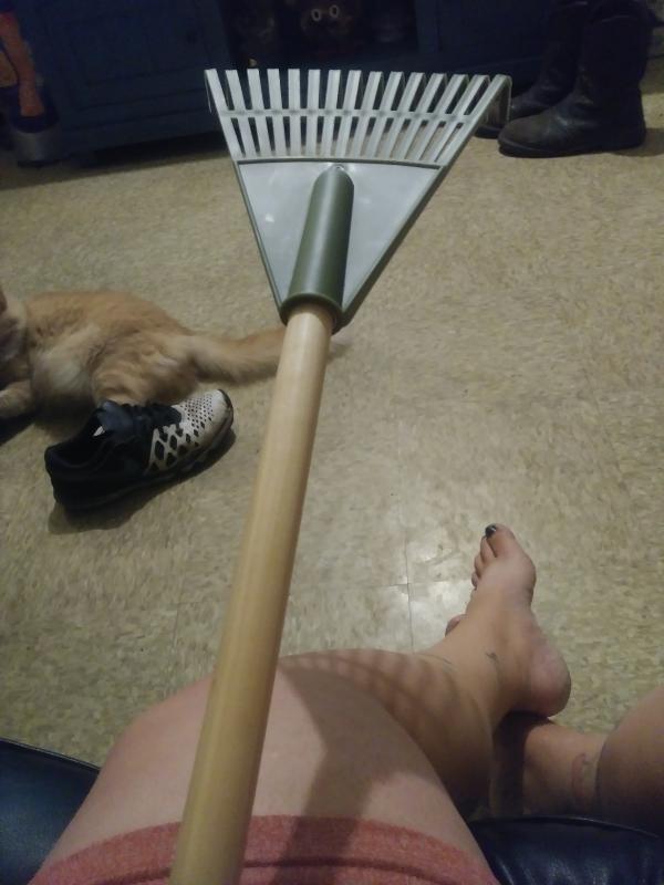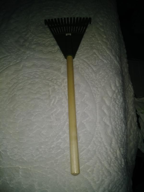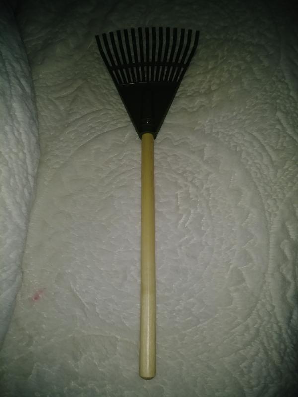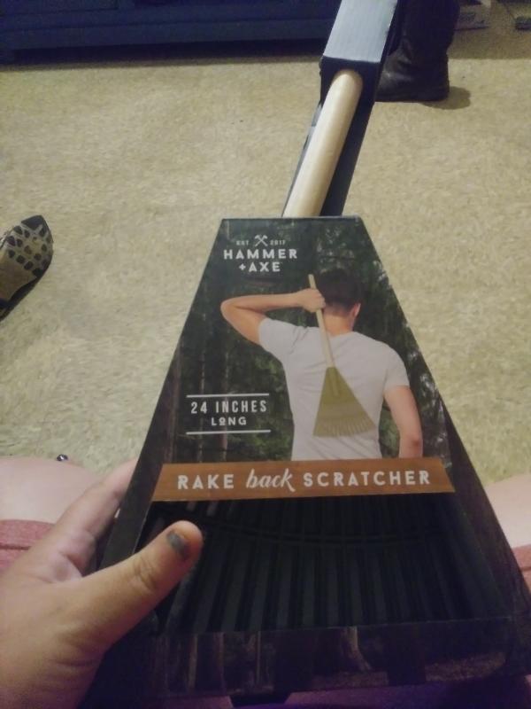 I received my new rake backscratcher the other day. It looks just like a miniature lawn rake. It’s a plastic rake with a wooden handle that measures 23 inches long. Plenty long of a reach to scratch your back from the top or from the bottom. It’s a little hard scratching through a double layer of shirts but through one shirt it works great. Plus it’s a great conversation piece.