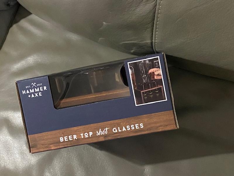 This was the perfect gift for my boyfriend. He brews his own beer at home, and will have several different types on tap at all times. The hammer and axe shot glasses are very sturdy and the glass is very thick. They are perfect for sampling beer. The wood is heavy and excellent quality. Highly recommend