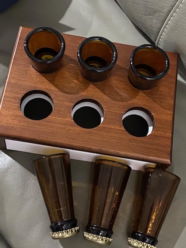 Set of 6 Beer Top Shot Glasses & Display Stand