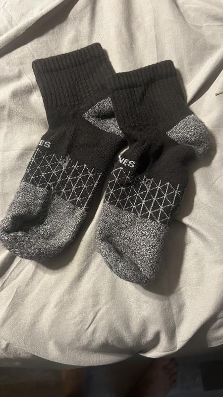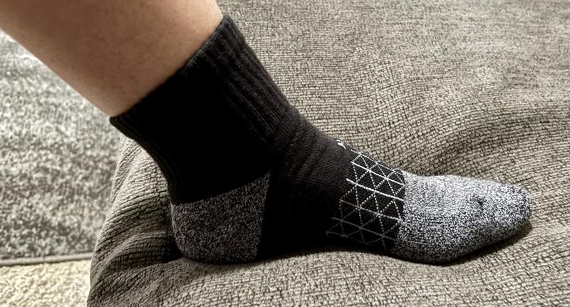 The men’s ankle socks are amazing! As soon as you put them on, you can feel how comfortable they’re going to be. They are kind of thick and they have great cushioning. The arch support area feels really nice on your feet and they are breathable. They are a cotton/poly/nylon/spandex blend so they’re soft and great for every day use.