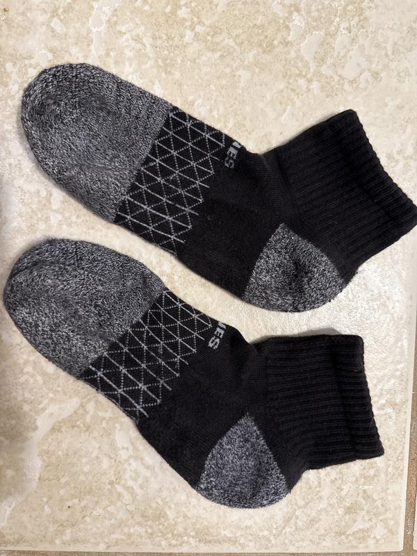 Awesome socks, not just for men ! Very comfortable don’t slip off while running. Wash up nicely, no piling or shedding. Really like the colors black and grey goes well with everything. My husband and I both enjoy wearing these!