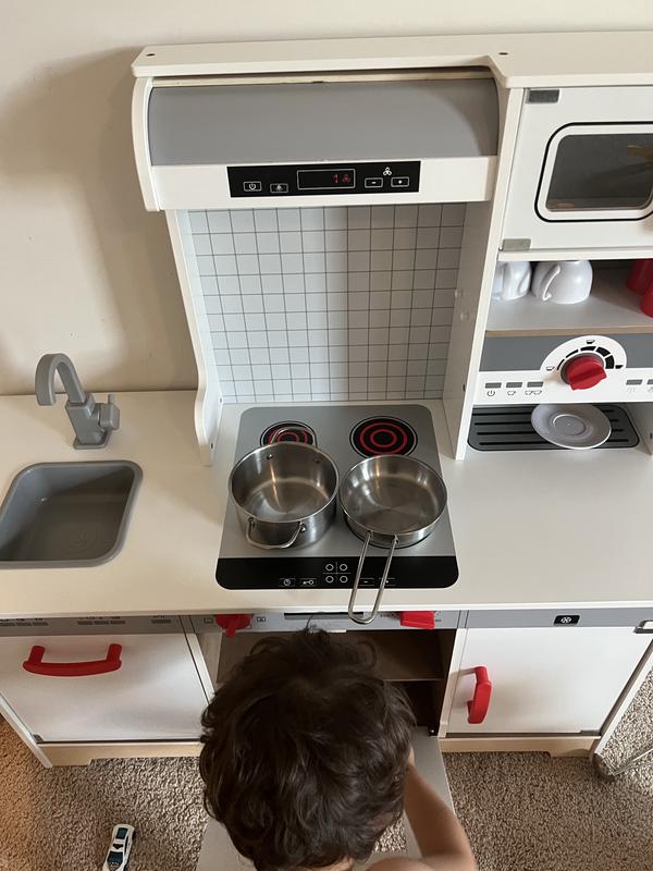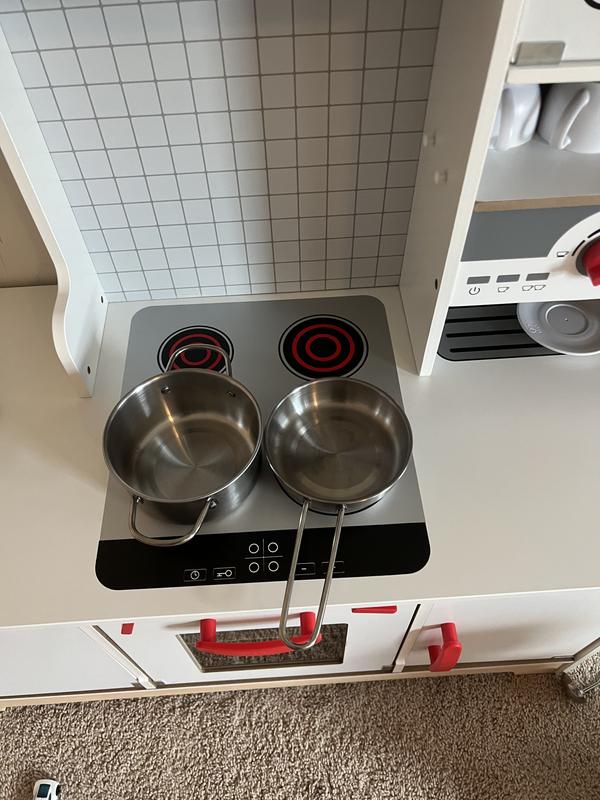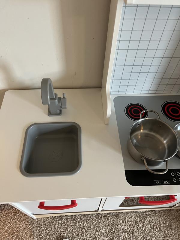 This Hape all in one kitchen set is truly all in one. It has everything it needs. My grandkids play with this for hours. It is top of the line in quality and also adorable. It comes with so many accessories.
