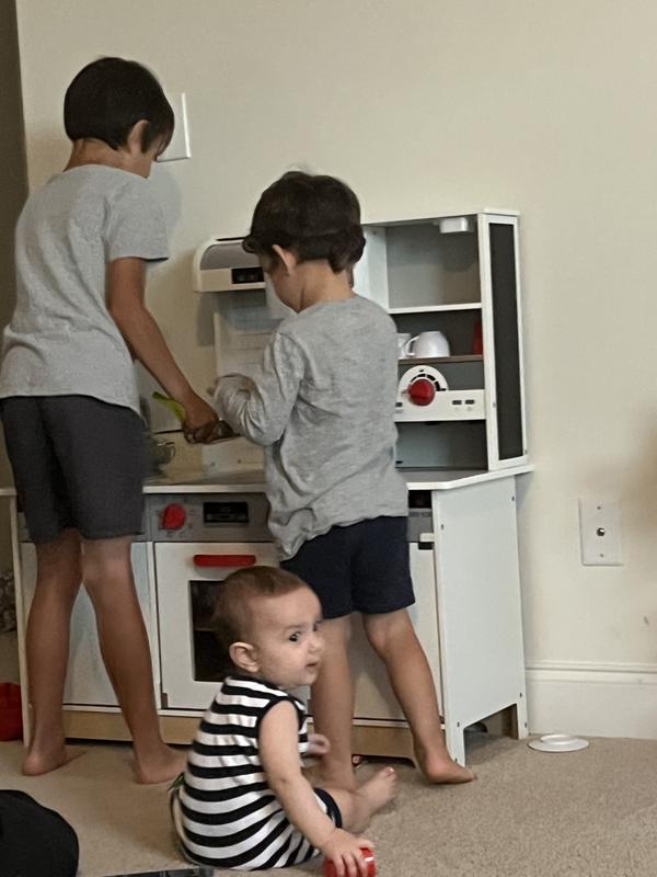 My kids loved this Play Kitchen Set. They are playing together a lot with this Play Kitchen Set. The eldest shares the chores and they have a lot of fun. The oldest cooks, the other washes the dishes and the smallest stays to taste the meals. I found it very educational. It teaches a fun way to do household chores at home. I loved that it has light and sounds as if it were real. I recommend