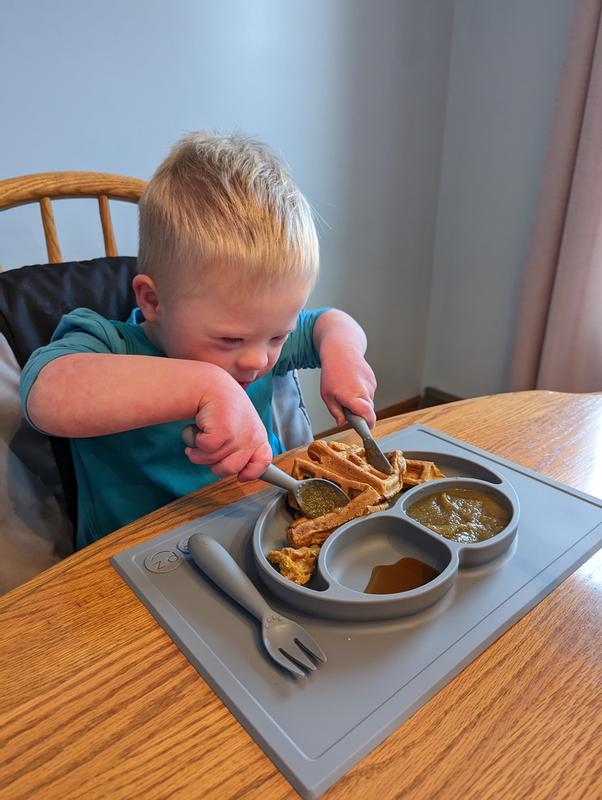 I’m a huge fan of EZPZ products, especially because of how thoughtfully they’re designed for not only development, but also for safety. That’s why ultimately I decided to purchase these for my 2 year old, but I’m extremely disappointed that these are made of plastic. The handle is silicone just like the baby version, but the top part is made of plastic. Not only does it feel cheap, but that’s the part that actually goes into my baby’s mouth and it touches the food. It says BPA free, but it does not specify whether the plastic is also free of BPS and BPF which are manufacturer alternatives to BPA that are just as, if not more harmful. I’m on the lookout for a better alternative and hate that I have to look for it from a different company. I feel that EZPZ can do better when it comes to this specific product and I sincerely hope they work to reformulate this set in a way that does not include harmful plastics. Our babies deserve better!