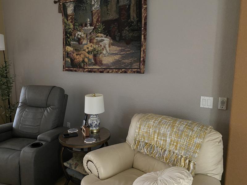 This is a very nice throw. It’s a very soft yarn, nice fringe, and beautifully woven colors of gray, mustard/gold, and cream. It’s advertised as rustic, but it really goes with any decor. Mine is a mix of antique and modern and it goes very well with a decor.