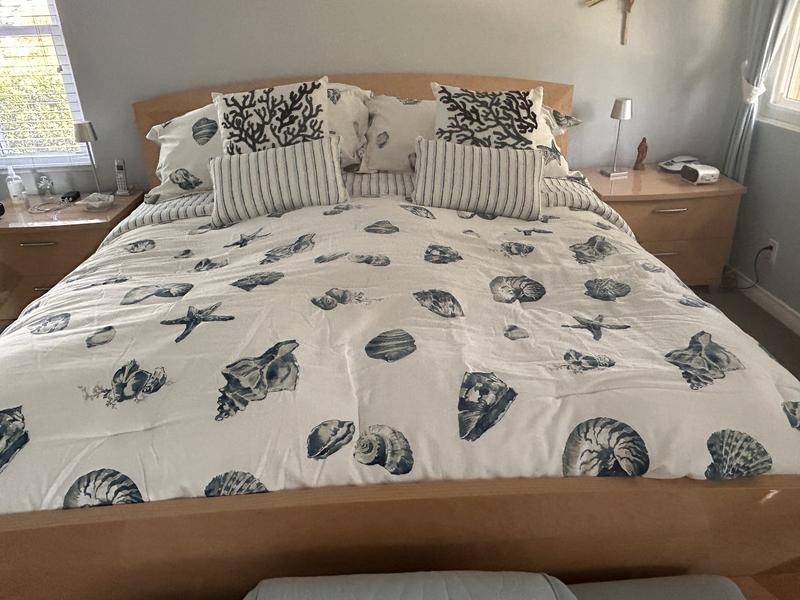 This is a dream set! If you have a beach lover in your life, who you have a special place in your heart for. Gift them this. Impressive quality. The design is super cute! The comforter is fully reversible, reversing to a yarn-dyed stripe in blues and white. The comforter is oversized and machine washable for easy care.