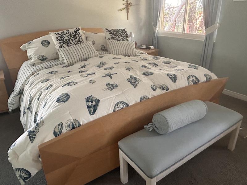 I just love this comforter set. I love the colors and beach vibe along with the fact that it's reversible. It is a heavier comforter and made me feel like I did not need my weighted blanket. I slept so well with the weight of it and I just love the texture.