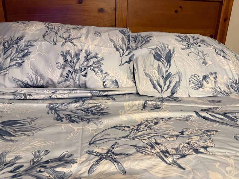 I love the design on this bedding. It’s very beautiful. Great quality bedding. Very durable as well. Fits perfect on my bed. Very comfortable and fresh. Very soft and fresh material. I’m obsessed with this bedding. Easy to wash as well. Highly recommend my favorite bedding at the moment.