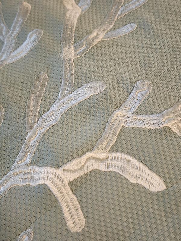I love the colors of Teal and Cream and the design of Branches on it. It looks great on my bed. Except, I will have to iron or use a steamer to remove all the wrinkles. I have received many compliments on it.