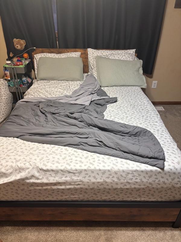 How it started (before bed) vs. how it ended (when I woke up)…but SO comfortable and easy to wash! It’s a slicker material, so it doesn’t like to stay on the bed when you sleep. Every time I rolled over though, despite being a hot sleeper, the comforter was cool. Most definitely my favorite comforter to date!