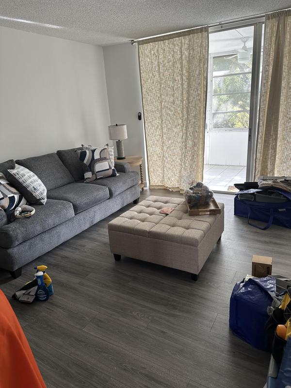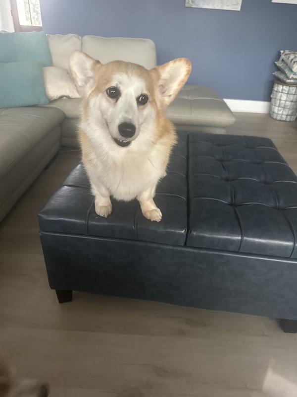 Love this ottoman. The leather type finish looks very high end. Best thing is that my 4 dogs’ hair doesn’t stick to it. Great piece to store magazines, toys or board games.
