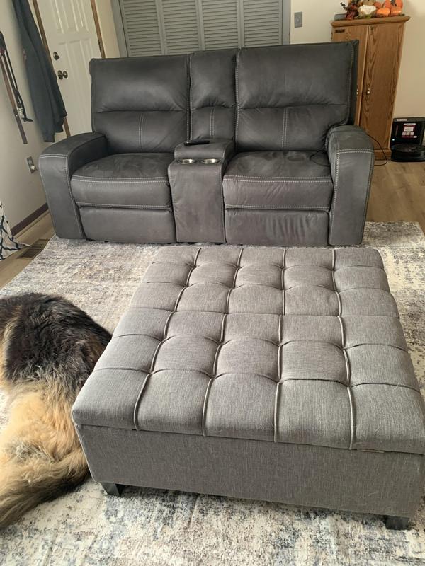 I love my new storage ottoman! I was looking for a coffee table that was square but I also wanted it to have storage. I had about given up finding such a thing when I looked on Ashley’s website and found ( not only what I was looking for) but the perfect color to go with my furniture!