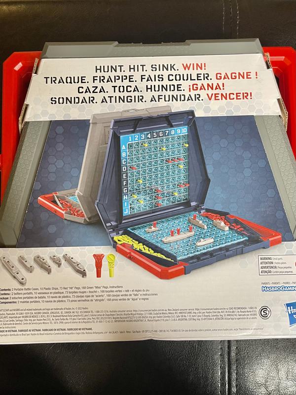 • Includes 2 portable battle cases, 10 plastic ships, 73 red "Hit" pegs, 168 green "Miss" pegs, and instructions