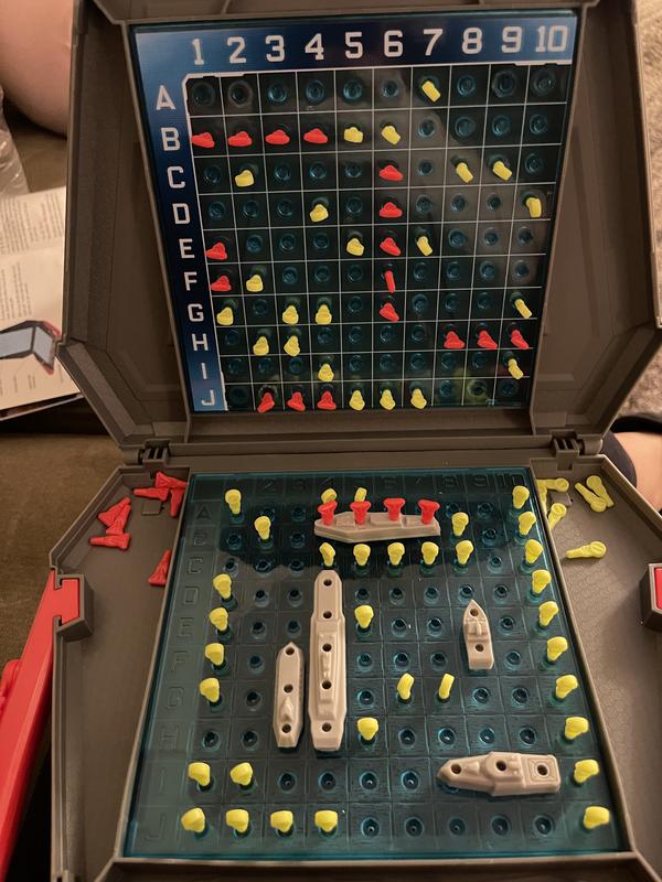 We love having Battleship tournaments at home with our 9 and 11-year-olds! No complaints except it would be nice if there was a way to play on the couch without worrying about the kids accidentally knocking their game board over and spilling all of the pegs in the couch...