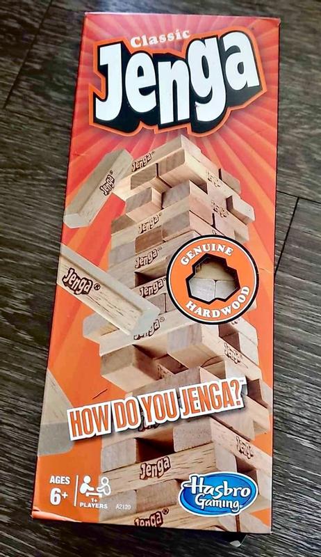 I received the game JENGA by Jenga and my grandkids and I had a blast playing. The tower was wobbly and rocking from side to side as we pulled blocks out. The package consist of the jenga blocks and the column to make the tower tight and fast to stack. This is a well fun household game that will never get boring from playing.