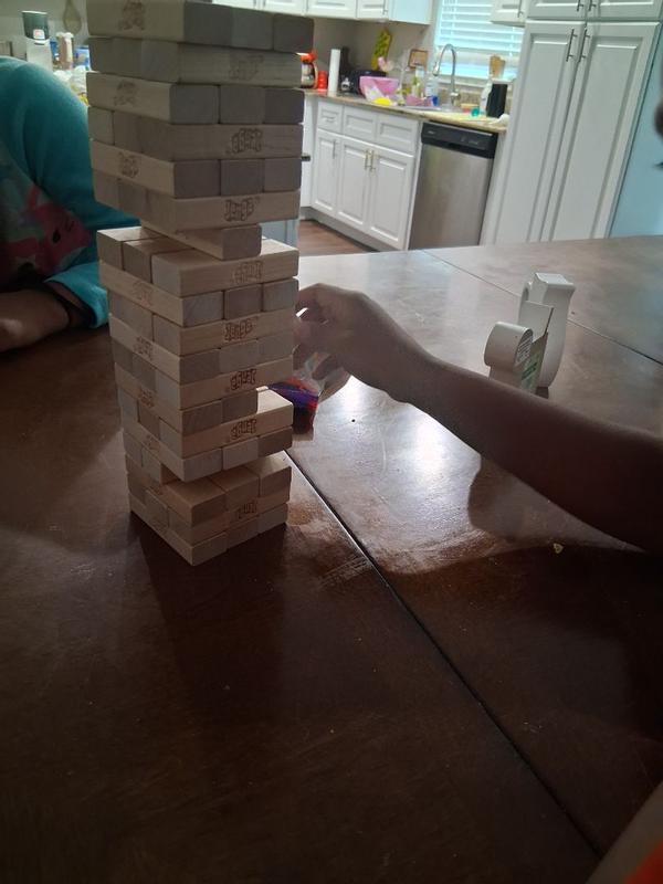Such a fun and easy game to play especially if you have kids. My kids will play this for hours ! The blocks are sterdy and this is a very easy game to Pack up and bring along to game nights !