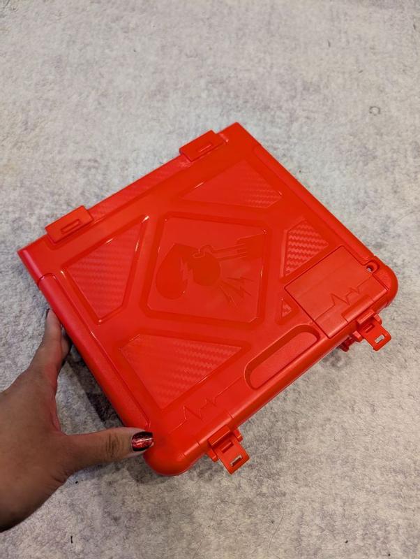 I was so happy that I was selected to try this. I thought my kids would love it, and I was right. Its a great little set up, in a travel size takeaway casing. Solid, which means no breaking cardboard boxes. It was so easy to set up, just requiring some AA batteries. Still the same family fun as the old version. The kids had the biggest laughs trying and often failing to get the parts out. Love this game.