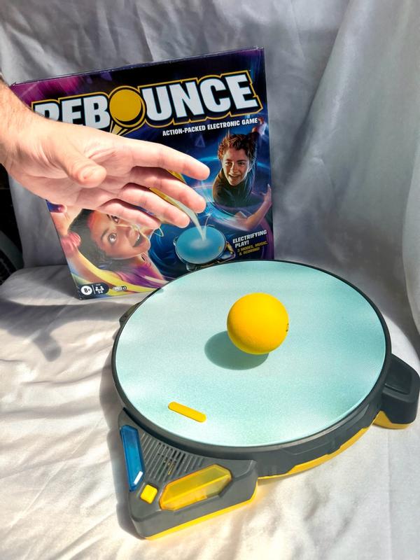 This exciting board game pits 2 to 6 players against each other in intense matches where skill and reflexes are key. Launch the foam ball from the trampoline and try not to catch it to score points. The first team to reach 10 points wins! Rebounce offers 3 different game modes, including freeze challenges and time trials, all accompanied by lights, sounds, and music to increase the excitement. Plus, its compact design with built-in storage makes it the perfect travel companion. Ideal for a laugh-filled afternoon of family competition! Recommended for children 8 years and older. Requires adult assembly and 3 AAA alkaline batteries (not included). Warning: This toy produces flashing lights that may trigger epilepsy in sensitive individuals.