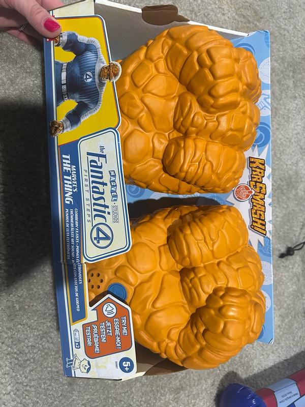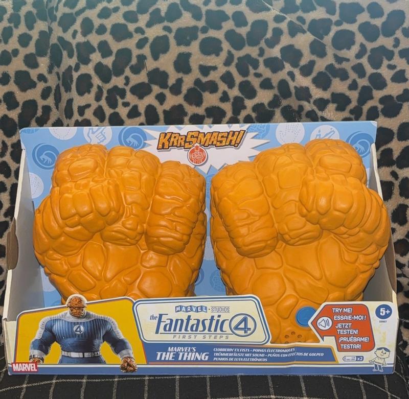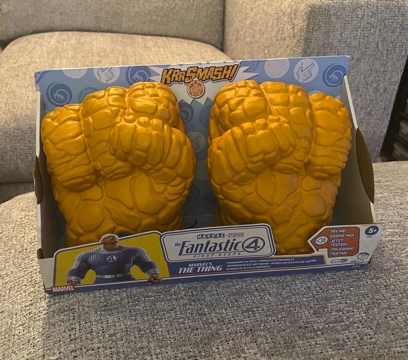 This is truly one of the most fun products we have tried. From the "adult kids" to the little ones, we have all enjoyed using The Thing's Clobberin fists to play. My son really loves all the sound effects. He says he feels like he is a real superhero. We love acting out all the fight scenes while The Thing is says "it's clobbering time." The fists are made with durable rubber and have a gripping strap on the inside for him to hold. This means the fists won't fly off and destroy things. The rubber is also pretty soft, so it doesn't hurt on contact. Overall, we love this toy and have all enjoyed using it as a family. I would highly recommend it.
