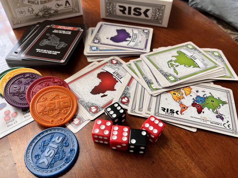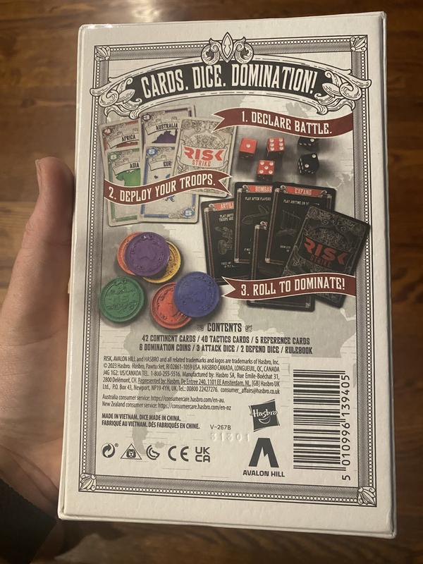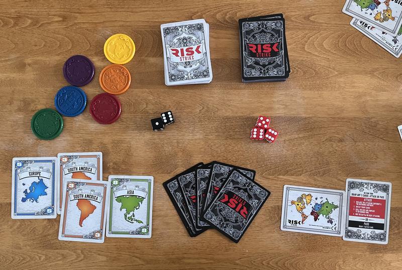 The Risk strike card and dice game is so much fun. It is easier to play then full size game. It came with simple easy to read directions very little prep is needed before playing. Great for adult or kids game nights.