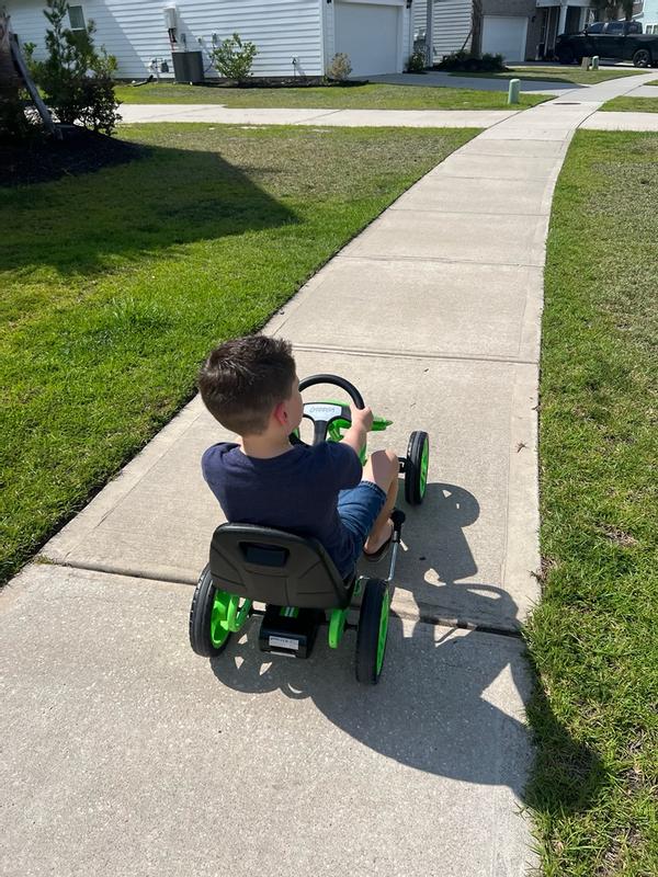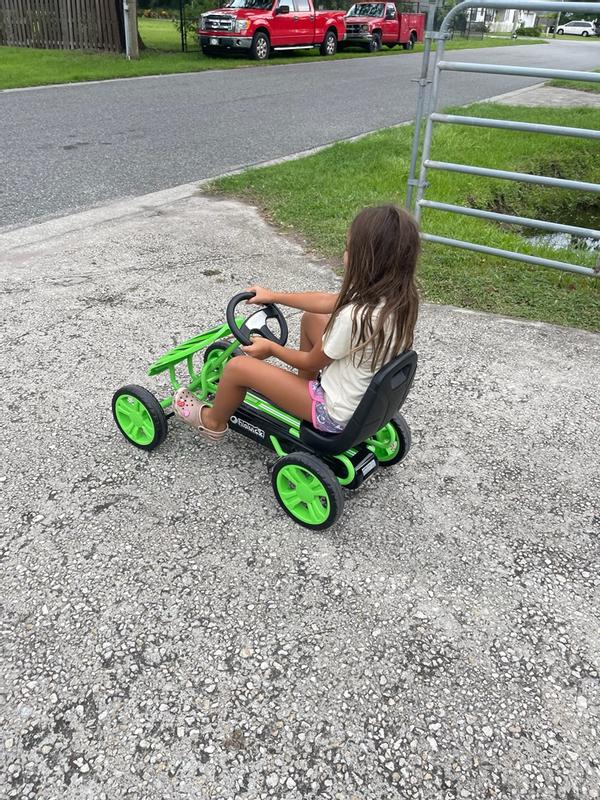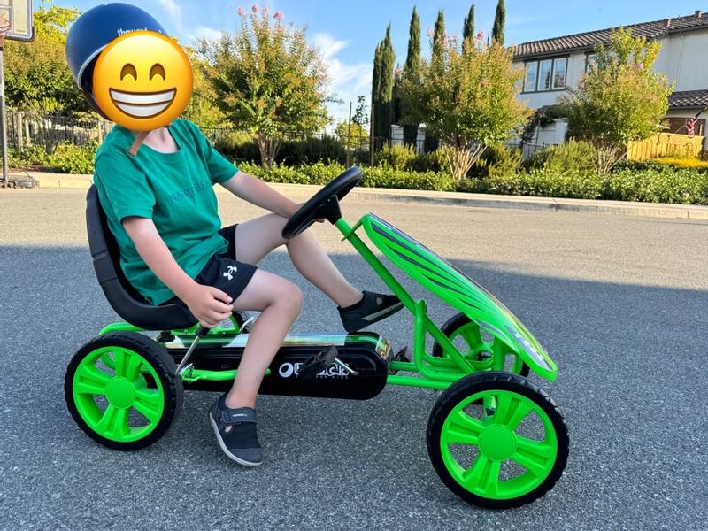 My 6 year old loves his go kart! He’s autistic, and learning to ride a bike and balance has been challenging for him, but this go cart is much easier for him to maneuver. He’s able to go pretty fast and stop himself easily with the hand break. Assembly was pretty straight forward; it took me and a friend less than 10 minutes to get it out together.