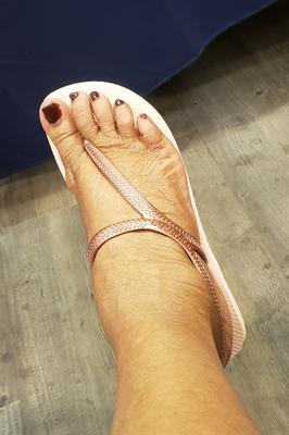 The right sandal is 1 size smaller than the left one. Both flip flop have the same size imprinted on them.Very disappointed.
