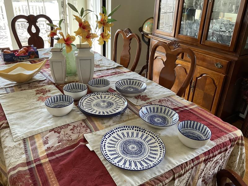 I love the color of the set and the design of the patterns it looks nice and they can be washed in the dishwasher they are of a good size I definitely like them And they are versatile, although the soup plates are somewhat small, they are enough for a breakfast with cereal and the smaller ones are ideal for desserts