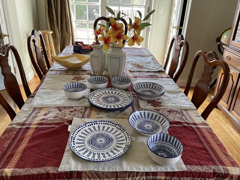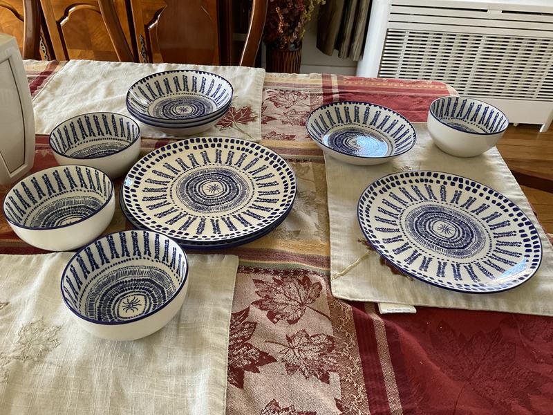 I wasn’t totally sure what to expect when I selected the Haven Mykonos set in blue, but I’m really happy with it. The color is gorgeous — kind of a deep, Mediterranean blue that looks great on the table. The pieces feel sturdy without being heavy, and they’ve held up well so far in the dishwasher. One thing I really like is how neatly everything stacks.My old dishes were all different shapes and never fit right in the cabinet,so this has been a nice upgrade.Overall, it’s a simple,clean set that looks a lot more expensive than it is. If you're thinking about getting it,I’d say go for it.